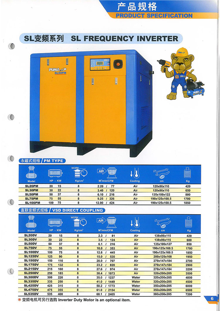 首页 > 产品展示 > PUMA巨霸空压